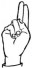На ћирилици написано БЛАЖА ВУЛИЋ састоји се из 10 слова [?]. Исписано ћириличном једноручном азбуком за глувонеме: